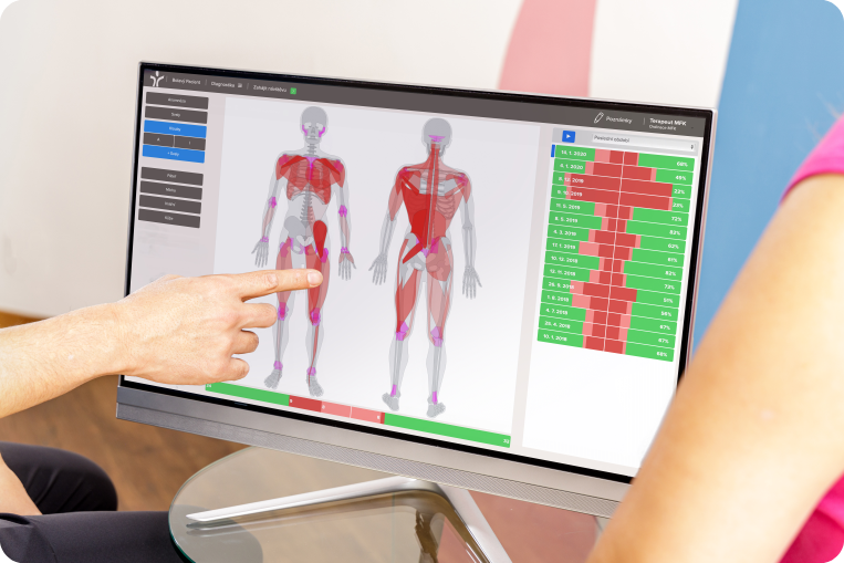 Díky aplikaci MFK tak můžete následně nahlédnout na aktuální stav vašeho svalového systému a mít ho i nadále k dispozici díky získanému online přístupu. Což dobře funguje jako motivace na změně a nápravě.
